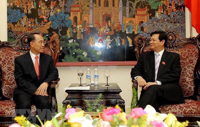 เมื่อวันที่14พฤศจิกายนปี2007 นายกรัฐมนตรีเหงวียนเตินหยุง ได้ให้การต้อนรับนายกานต์ ตระกูลฮุน กรรมการผู้จัดการใหญ่ เครือเอสซีจีที่เดินทางมาเยือนเวียดนาม (ภาพ: Nhan Sáng/TXVN) |