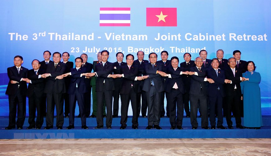 นายกรัฐมนตรีเวียดนามเหงวียนเตินหยุงเยือนไทยและร่วมเป็นประธานการประชุมครม.ร่วมเวียดนาม-ไทยครั้งที่3 เมื่อวันที่23กรกฎาคมปี2015 โดยในการประชุมนี้ ทั้งสองฝ่ายได้เห็นพ้องยกระดับความสัมพันธ์เป็นหุ้นส่วนยุทธศาสตร์ที่เข้มแข็ง (ภาพ: Đức Tám/TTXVN) |