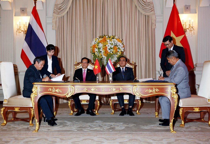 ในกรอบการเยือนไทยครั้งนี้ เวียดนามและไทยได้ประกาศยกระดับความสัมพันธ์เป็นหุ้นส่วนยุทธศาสตร์ และไทยคือประเทศแรกในอาเซียนที่เวียดนามสถาปนาความสัมพันธ์ในระดับนี้ (ภาพ: Trí Dũng/TTXVN) |