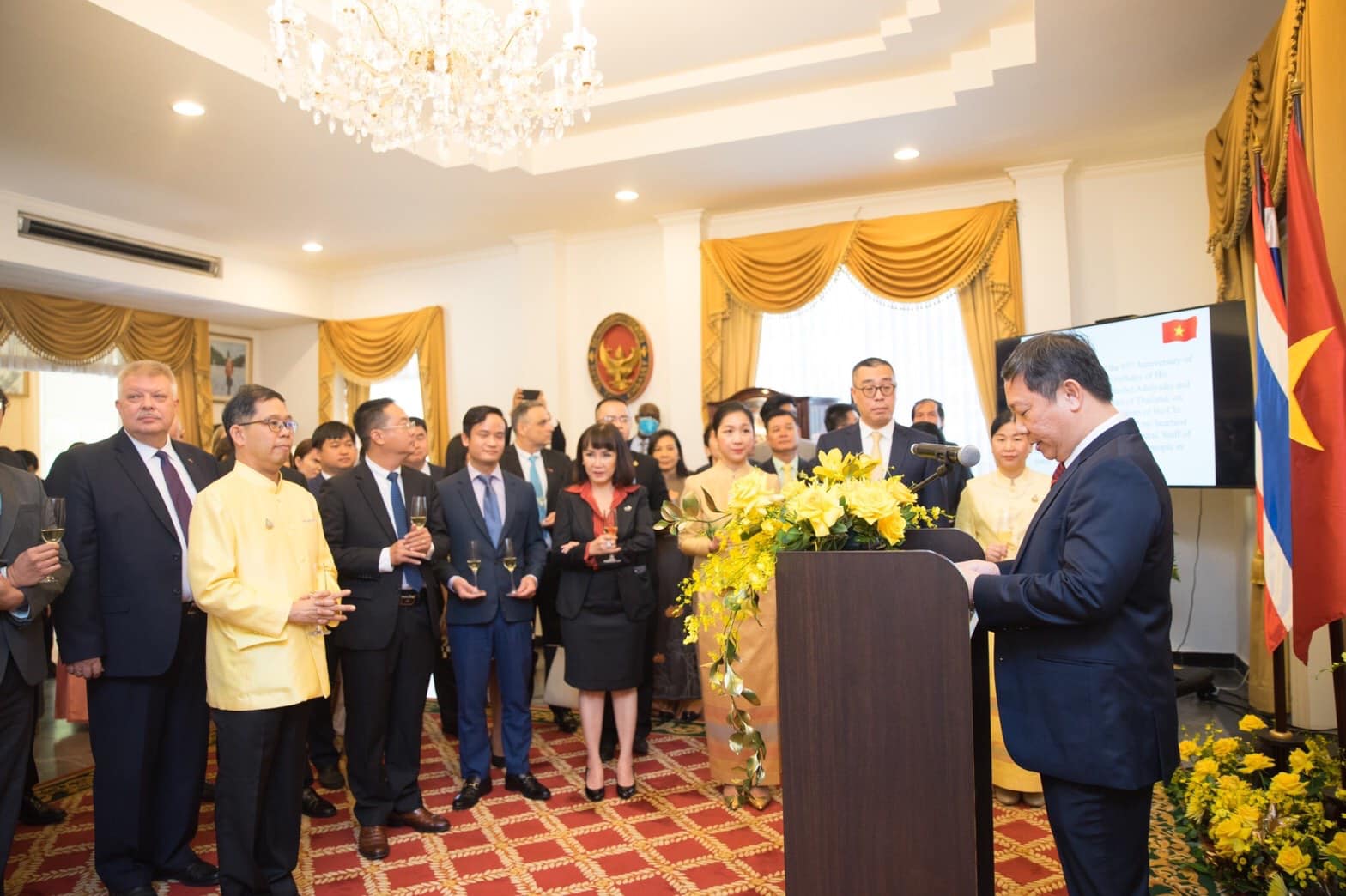 ส่วนนายเยือง อัน ดึ๊ก รองประธานคณะกรรมการประชาชนนครโฮจิมินห์ได้เผยว่า ในช่วง 44 ปีที่ผ่านมา ความสัมพันธ์ไทย-เวียดนามแนบแน่นทุกด้าน ทั้งด้านการเมือง เศรษฐกิจ การค้า การลงทุน และความสัมพันธ์ระดับประชาชน ซึ่งความสัมพันธ์ไทย-เวียดนาม ยังคงเติบโตขึ้นอย่างแข็งแกร่งท่ามกลางวิกฤต COVID-19 ที่การค้าทวิภาคีของทั้ง 2 ประเทศในช่วง 9 เดือนแรกของปี 2563 มีมูลค่า 11,000 ล้านดอลลาร์สหรัฐ และในช่วง 6 เดือนแรกของปี ไทยมีการลงทุนในเวียดนามกว่า 1,580 ล้านดอลลาร์สหรัฐ ซึ่งถือว่า เป็นผู้ลงทุนโดยตรงจากต่างชาติที่มีการลงทุนมากเป็นลำดับที่ 2 พร้อทั้งเผยว่า นครโฮจิมินห์สถาปนาความสัมพันธ์บ้านพี่เมืองน้องกับกรุงเทพฯ มาตั้งแต่ปี 2558 และได้มีการแลกเปลี่ยนการเยือนอย่างสม่ำเสมอ นอกจากนี้ ไทยยังมีการลงทุนในนครฯ จำนวน 219 โครงการ ซึ่งมีเงินทุนรวม 454 ล้านดอลลาร์สหรัฐ คิดเป็นอันดับที่ 12 จาก 111 ประเทศที่มาลงทุนในนครฯ โดยนครโฮจิมินห์มีการค้ากับไทยในช่วง 9 เดือนแรกของปีคิดเป็น 2,300 ล้านดอลลาร์สหรัฐ พร้อมทั้ง ยืนยันว่า ไทยและเวียดนามจะส่งเสริมความสัมพันธ์ร่วมมือเพื่อร่วมกันฟันฝ่าเวลาที่ยากลำบากนี้ ตลอดจนจะเสริมสร้างความแข็งแกร่งของ ASEAN.