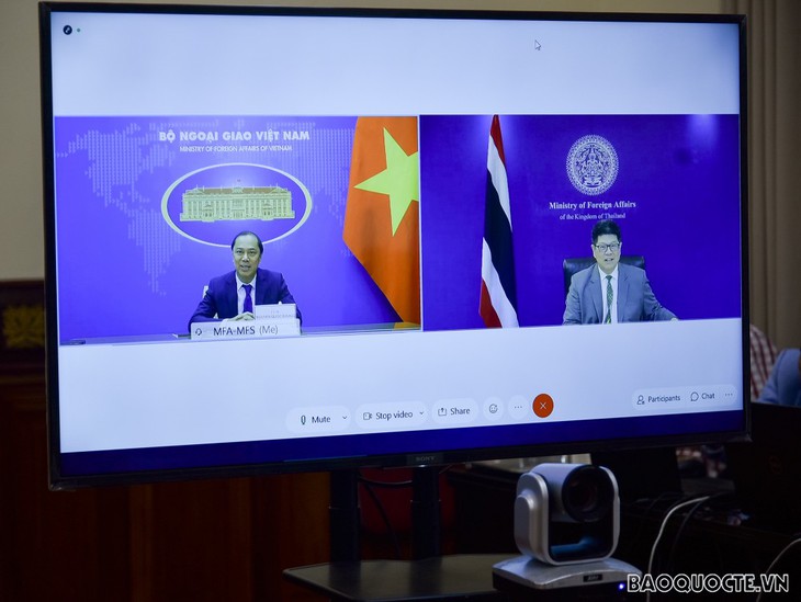 วันที่ 24 กุมภาพันธ์ นาย เหงียนก๊วกหยุง รัฐมนตรีช่วยว่าการกระทรวงการต่างประเทศเวียดนามได้เจรจากับ นายธานี ทองภักดี ปลัดกระทรวงการต่างประเทศไทยผ่านวิดีโอคอนเฟอเรนซ์เพื่อหารือเกี่ยวกับความสัมพันธ์ทวิภาคีและปัญหาระดับภูมิภาคและโลกที่ต่างให้ความสนใจ ทั้งสองฝ่ายได้เห็นพ้องกระชับความสัมพันธ์หุ้นส่วนยุทธศาสตร์ที่เข้มแข็งเวียดนาม – ไทยให้แน่นแฟ้นและมีประสิทธิภาพมากขึ้น ผลักดันการพบปะในทุกระดับ ธำรงความร่วมมือทวิภาคี กำหนดกรอบเวลาและรูปแบบการจัดการประชุมค.ร.มร่วมเวียดนาม – ไทยครั้งที่ 4 และคณะกรรมการผสมเกี่ยวกับความร่วมมือทวิภาคีในระดับรัฐมนตรีต่างประเทศและทาบทามทางการเมืองในระดับรัฐมนตรีช่วยว่าการกระทรวงการต่างประเทศให้เหมาะสม ทั้งสองฝ่ายจะประสานงานจัดกิจกรรมรำลึกครบรอบ 45 ปีการสถาปนาความสัมพันธ์ทางการทูตในปี 2021 ส่งเสริมการจัดทำและลงนามโครงการปฏิบัติความสัมพันธ์หุ้นส่วนยุทธศาสตร์ที่เข้มแข็งและข้อตกลงร่วมมือระหว่างกระทรวงการต่างประเทศของทั้งสองประเทศในช่วงปี 2021-2025 ขยายความร่วมมือการค้าที่สมดุลและพยายามให้มูลค่าการค้าต่างตอบแทนเพิ่มขึ้นเป็น 2 หมื่นล้านดอลลาร์สหรัฐ ซึ่งเมื่อปี 2019 มูลค่าการนำเข้าและส่งออกระหว่างสองประเทศได้บรรลุ 1 หมื่น 6 พัน 9 ร้อยล้านดอลลาร์สหรัฐ ยืนยันร่วมมืออย่างใกล้ชิดในกรอบความร่วมมือระดับอนุภูมิภาค สร้างสรรค์ประชาคมอาเซียน ผลักดันการให้ภาคีและบังคับใช้ข้อตกลง RCEP