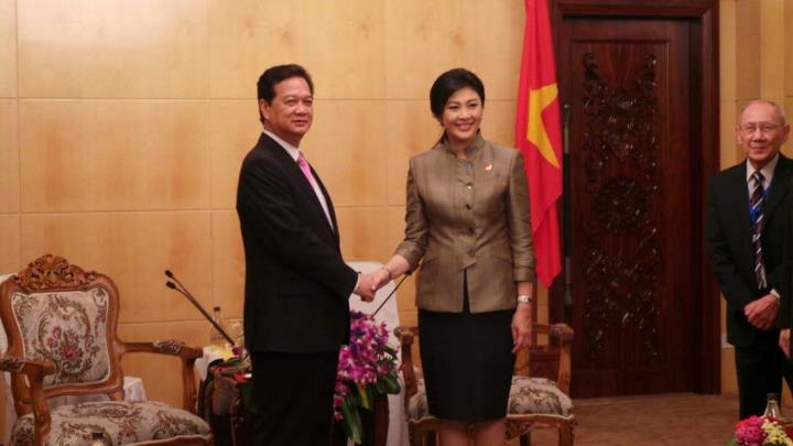 | นายกรัฐมนตรีเวียดนามได้มีการพบปะกับนางสาว ยิ่งลักษณ์ ชินวัตร นายกรัฐมนตรีไทยนอกกรอบการประชุมผู้นำอาเซียนครั้งที่๒๒ (Photo: www.vietnamplus.vn) |