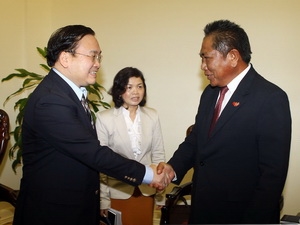 | รองนายกฯเวียดนามห่วางจุงห๋าย ให้การต้อนรับนาย ประจวบ ไชยสาส์น นายกสมาคมมิตรภาพไทย-เวียดนาม (Photo: vietnamplus.vn) |