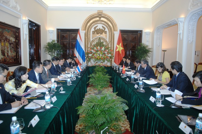 (VOVWorld)-เมื่อเดือนกรกฎาคมที่ผ่านมา กิจกรรมความร่วมมือระหว่างสองประเทศได้มีขึ้นอย่างคึกคักทั้งด้านการเมือง เศรษฐกิจและกลาโหม ซึ่งที่น่าสนใจคือการประชุมทาบทามทางการเมืองประจำปีเวียดนาม-ไทยครั้งที่๔ที่มีขึ้น เมื่อวันที่๑๗กรกฎาคม ณ กรุงเทพฯ ภายใต้อำนวยการของนาย ฝ่ามกวางวิง รัฐมนตรีช่วยว่าการกระทรวงการต่างประเทศเวียดนามและนาย สีหศักดิ์ พวงเกตุแก้ว ปลัดกระทรวงการต่างประเทศไทย ในการนี้ นาย สีหศักดิ์ พวงเกตุแก้วได้รายงานเกี่ยวกับสถานการณ์ล่าสุดในไทย พร้อมทั้งชื่นชมการที่เวียดนามให้การสนับสนุนไทยในการฟื้นฟูเสถียรภาพและการปฏิบัติกระบวนการรวม๓ระยะเพื่อมุ่งสู่การเลือกตั้ง อีกทั้งยืนยันว่า ไทยให้ความสำคัญและมีความประสงค์ที่จะผลักดันความสัมพันธ์หุ้นส่วนยุทธศาสตร์กับเวียดนาม ทั้งสองฝ่ายได้เห็นพ้องที่จะผลักดันกลไกร่วมมือทวิภาคี เช่น การประชุมคณะรัฐมนตรีร่วม การประชุมคณะกรรมการผสมเกี่ยวกับความร่วมมือทวิภาคีระดับรัฐมนตรีว่าการกระทรวงการต่างประเทศ คณะกรรมการร่วมด้านการค้าและกลุ่มปฏิบัติงานด้านการเมืองและความมั่นคง ประสานงานในการวางแผนการจัดกิจกรรมต่างๆในโอกาสฉลองครบรอบ๔๐ปีการสถาปนาความสัมพันธ์ทางการทูตระหว่างสองประเทศในปี๒๐๑๖ พร้อมทั้ง เอื้อให้แก่สถานประกอบการทั้งสองประเทศในการผลักดันความร่วมมือด้านการลงทุนและการค้าเพื่อเพิ่มมูลค่าการค้าต่างตอบแทนให้อยู่ที่๑หมื่น๕พันล้านเหรียญสหรัฐภายในปี๒๐๒๐ ผลักดันการปฏิบัติโครงการใหญ่ๆของไทยในเวียดนาม เช่น ปิโตรเคมี ไฟฟ้าพลังความร้อนและการพัฒนานิคมอุตสาหกรรม สำหรับความร่วมมือด้านความมั่นคงและกลาโหม ทั้งสองฝ่ายได้เห็นพ้องที่จะแลกเปลี่ยนคณะผู้แทน แลกเปลี่ยนประสบการณ์ในการป้องกันและปราบปรามอาชญากรรม ผลักดันการลาดตระเวณร่วมและพิจารณาการสร้างสรรค์กลไกการสนทนานโยบายด้านกลาโหมระดับรัฐมนตรีช่วย ในการนี้ ทั้งสองฝ่ายได้เห็นพ้องที่จะขยายความร่วมมือในการเชื่อมโยงการคมนาคมทางบก ผลักดันความร่วมมือด้านการขนส่งทางทะเลและใช้ประโยชน์ท่าเรือของทั้งสองประเทศ สำหรับความร่วมมือด้านแรงงาน ทั้งสองฝ่ายได้เห็นพ้องที่จะผลักดันการเจรจาเพื่อมุ่งสู่การลงนามบันทึกช่วยจำว่าด้วยความร่วมมือด้านแรงงาน ส่งเสริมการจัดตั้งกลไกการปรึกษาด้านกงสุลเพื่อผลักดันความร่วมมือในการแก้ไขปัญหาต่างๆที่เกี่ยวข้อง เช่น ปัญหาชาวประมงและการค้ายาเสพติด ในกรอบพหุภาคี เวียดนามและไทยจะขยายการประสานงานกับประเทศสมาชิกอาเซียนอื่นๆเพื่อสร้างสรร