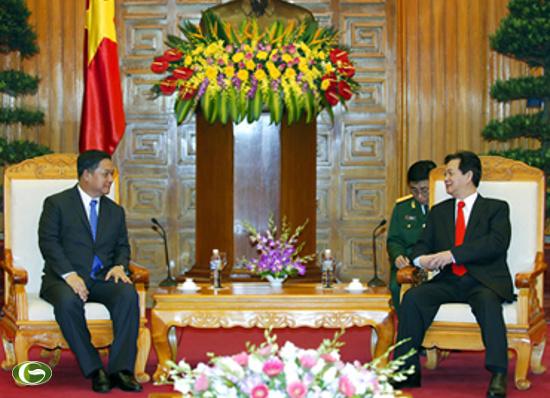| ท่าน NguyễnTấnDũng นายกรัฐมนตรีให้การต้อนรับพลอากาศเอก สุกำพล สุวรรณทัด รัฐมนตรีกระทรวงกลาโหมไทย (Internet) |