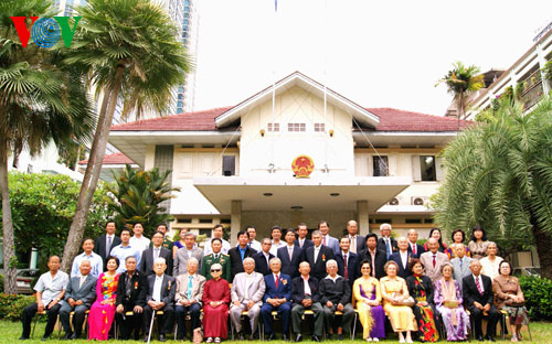 บรรดาผู้แทนที่เข้าร่วมการพบปะถ่ายภาพด้านหน้าสถานทูตเวียดนามประจำกรุงเทพฯ