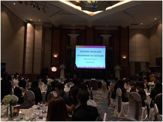 งาน Amazing Thailand Road Show to Vietnam 2017 ได้มีขึ้นเมื่อวันที่ 3 เมษายน ณ กรุงฮานอย โดยมีนายห่า วัน เซียว รองอธิบดีทบวงการท่องเที่ยวเวียดนามให้เกียรติเข้าร่วม งาน Amazing Thailand Road Show to Vietnam 2017 มีวัตถุประสงค์เพื่อส่งเสริมการท่องเที่ยวของไทย และเปิดโอกาสให้ผู้ประกอบการธุรกิจท่องเที่ยวไทยกว่า 28 รายได้พบปะแลกเปลี่ยนทางธุรกิจกับผู้ประกอบการธุรกิจท่องเที่ยวเวียดนาม