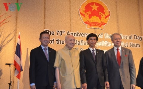 นาย เหงวียนเติ๊ดแถ่ง เอกอัครราชทูตเวียดนามประจำประเทศไทยกับนาย พิชัย รัตตกุล อดีตประธานรัฐสภา และรองนายกรัฐมนตรี ไทยในพิธีฉลองครบรอบ 70 ปีวันชาติเวียดนาม 2 กันยายน
