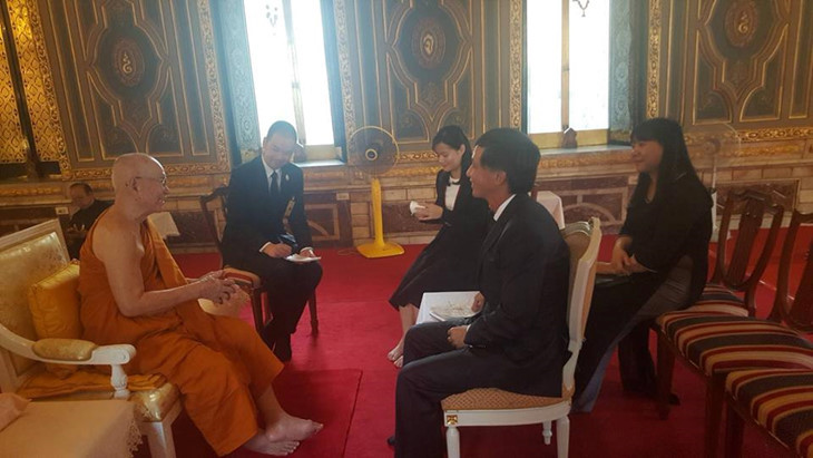 ส่วนในการให้การต้อนรับนาย เหงียนเติ๊ตแถ่ง เอกอัครราชทูตเวียดนามเข้าอำลาเนื่องในโอกาสเสร็จสิ้นการปฏิบัติหน้าที่ตามวาระในประเทศไทย เมื่อวันที่ 18 มิถุนายน สมเด็จพระอริยวงศาคตญาณ สมเด็จพระสังฆราชทรงแสดงความเห็นว่า พุทธสมาคมเวียดนามมีบทบาทสำคัญเป็นอย่างยิ่งบนเวทีโลก ซึ่งสะท้อนให้เห็นผ่านการเป็นเจ้าภาพจัดงานวันวิสาขบูชาของสหประชาชาติหรือ Vesak ปี 2008 และปี 2014 พร้อมทั้งกำลังเตรียมเป็นเจ้าภาพจัดวันวิสาขบูชาปี 2019 สมเด็จพระอริยวงศาคตญาณ สมเด็จพระสังฆราชทรงแสดงความพร้อมที่จะเสด็จเยือนเวียดนามในโอกาสที่เหมาะสม ส่วนเอกอัครราชทูต เหงียนเติ๊ตแถ่ง ได้กล่าวขอบคุณพุทธสมาคมไทยและรัฐบาลไทยที่ได้สนับสนุนและอำนวยความสะดวกให้วัดเวียดนามและชมรมชาวเวียดนามในประเทศไทยประกอบศาสนกิจ พร้อมทั้งมีความประสงค์ว่า พุทธสมาคมไทยจะอำนวยความสะดวกให้พระสงฆ์ของเวียดนามได้ศึกษาในสถาบันพุทธศาสนาของไทยเพื่อมีส่วนร่วมผลักดันความเข้าใจและกระชับความสัมพันธ์ระหว่างพุทธศาสนาของทั้งสองประเทศให้แน่นแฟ้นมากขึ้น