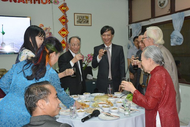 (VOVworld) - ท่ามกลางบรรยากาศของการต้อนรับตรุษเต๊ตปีระกา 2017 อย่างคึกคัก ขอเริ่มต้นด้วยกิจกรรมการฉลองปีใหม่ประเพณีของเจ้าหน้าที่พนักงานสถานทูตเวียดนาม ณ กรุงเทพฯและชมรมชาวเวียดนามที่กำลังอาศัย ทำงานและศึกษาในประเทศไทยกว่า200 คนเมื่อค่ำวันที่ 22 มกราคม โดยบรรดาผู้เข้าร่วมงานได้มีโอกาสลิ้มลองอาหารพื้นเมืองเวียดนาม เช่นแบ๊งจึงหรือขนมข้าวต้มมัดใหญ่ และหัวหอมดอง นอกจากนี้ ยังมีการจัดกิจกรรมทำแบ๊งจึงหรือขนมข้าวต้มมัดใหญ่ เพื่อแจกให้แก่ประชาชนเวียดนามในประเทศไทยและการเสวนาเกี่ยวกับแนวคิด คุณธรรมและการดำเนินชีวิตของประธานโฮจิมินห์ในโอกาสรำลึกครบรอบ 87 ปีการก่อตั้งพรรคคอมมิวนิสต์เวียดนาม