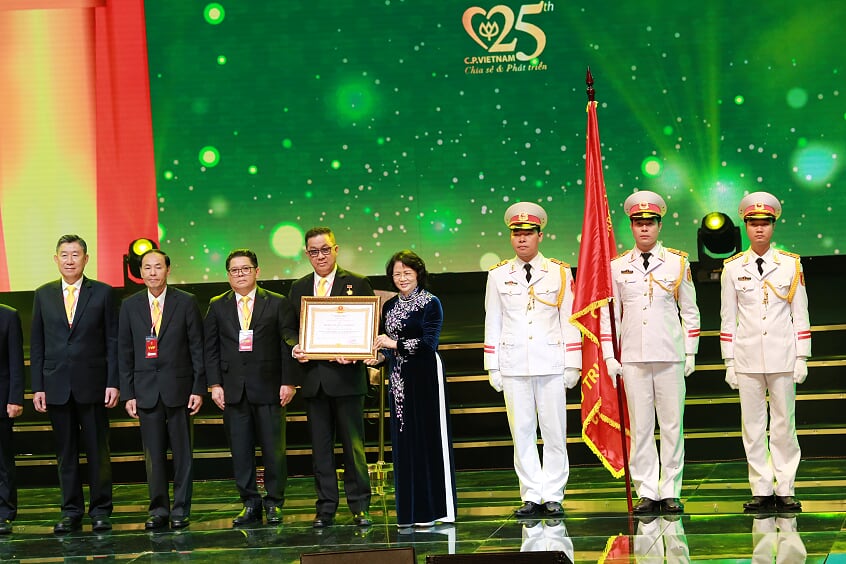 | ในตลอด 25 ปีที่ประกอบธุรกิจในเวียดนาม บริษัทซี.พี. เวียดนาม ได้สมทบเงินทุนกว่า 8 ล้าน 3 แสนล้านด่งให้แก่งบประมาณของเวียดนาม สร้างงานทำให้แก่แรงงานเวียดนามกว่า 4 แสนคน จากความพยายามดังกล่าว ทางบริษัทฯได้รับรางวัลอันสูงส่งต่างๆ เช่น เหรียญทองผลิตภัณฑ์ที่มีคุณภาพระดับชาติปี 2013 สถานประกอบการยอดเยี่ยม ASEAN Award 2014-2015 หนังสือชมเชยของกระทรวงการเกษตรและพัฒนาชนบทเกี่ยวกับการมีส่วนร่วมต่อการพัฒนาของหน่วยงานเพาะเลี้ยงเวียดนาม รางวัล ข้าวทองปี 2015 และสินค้าเวียดนามที่มีคุณภาพสูงปี 2015 เป็นต้น. |