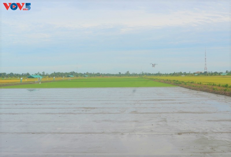 เขตที่ราบลุ่มแม่น้ำโขงมีพื้นที่ปลูกข้าวที่กว้างใหญ่ ซึ่งการที่เกษตรกรและหน่วยงานการเกษตรได้นำเครื่องจักรกลเข้ามาใช้นั้นได้ช่วยลดปริมาณการใช้พันธุ์ข้าวและค่าใช้จ่ายด้านปุ๋ยและยา โดยเฉพาะลดการปล่อยก๊าซที่ก่อให้เกิดปฏิกิริยาเรือนกระจกและเพิ่มรายได้ให้แก่เกษตรกร นาย กาววันเฮี๊ยว เกษตรกรจากอำเภอถวายเซิน จังหวัดอานยาง กล่าวว่า