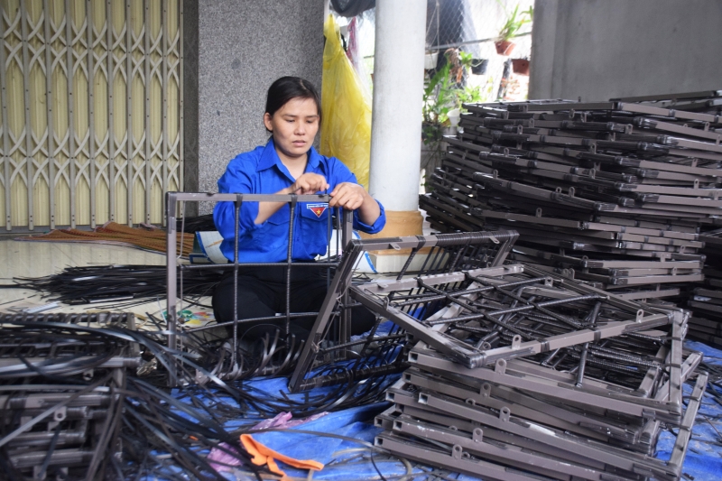 เมื่อปี 2019 หลังจากเรียนจบการฝึกอาชีพทำเครื่องเฟอร์นิเจอร์หวายเทียม นาง เหงียนถิเหละถวี จากหมู่บ้านกิงเต๊ ตำบังแกงถ่วน อำเภอเวินแกง จังหวัดบิ่งดิ๋งได้ลองเปิดโรงงานผลิตที่บ้าน โดยใช้เงินลงทุนเกือบ 100 ล้านด่งเพื่อซื้อเครื่องจักรต่างๆสำหรับการสานเฟอร์นิเจอร์ แล้วติดต่อบริษัทต่างๆในจังหวัดฯเพื่อจะได้รับใบสั่งซื้อ ในตอนแรก เธอได้รับใบสั่งซื้อจำนวนมากจึงจ้างชาวบ้านช่วยทำด้วย ซึ่งมีส่วนร่วมแก้ปัญหางานทำให้แก่ชนกลุ่มน้อยเผ่าจามในท้องถิ่นจำนวนหนึ่ง แต่ถึงปี 2021 การแพร่ระบาดของโรคโควิด -19 ได้ส่งผลยอดสั่งซื้อลดลงจนเธอไม่มีเงินจ่ายเงินเดือนให้แก่ลูกจ้าง ซึ่งในช่วงนั้น กองทุน “เยาวชนบิ่งดิ๋งสตาร์ทอัพ” ได้ให้เธอกู้เงิน 150 ล้านด่งด้วยดอกเบี้ยร้อยละ 0.3 เพื่อธำรงการผลิตและจ่ายเงินเดือนให้แก่แรงงาน เธอบอกว่า
