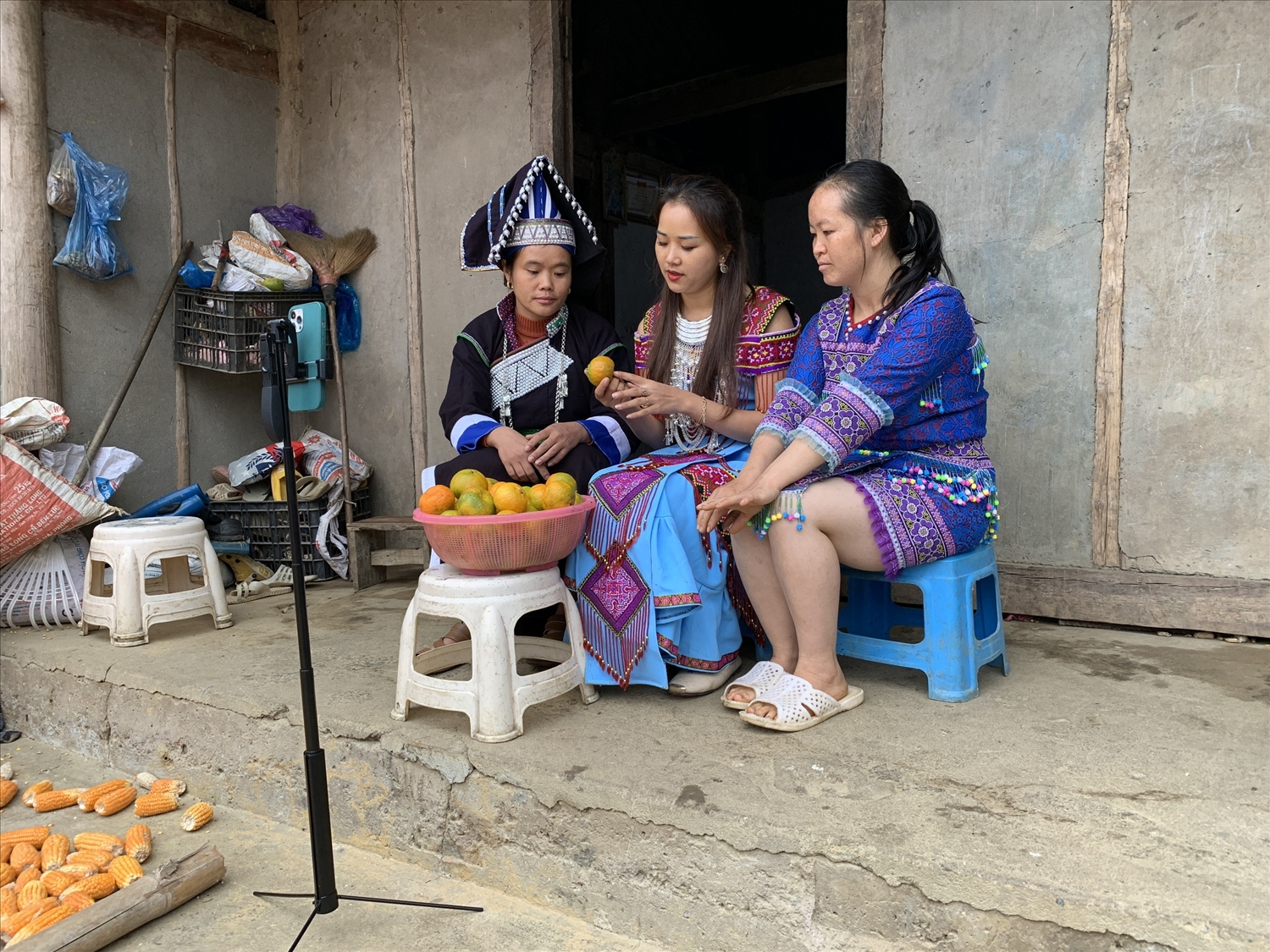 นางสาว มาถิชู้ แนะนำให้สตรีในชาวบ้านขายผลไม้แบบ livestream (baodantoc.vn) |