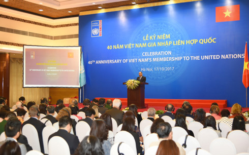 ในการกล่าวปราศรัยในพิธี นาย เหงวียนซวนฟุก นายกรัฐมนตรีได้ย้ำว่า การที่เวียดนามกลายเป็นสมาชิกที่ 149 ของสหประชาชาติเมื่อวันที่ 20 กันยายนปี 1977 ได้สร้างนิมิตหมายแห่งการรับรองรัฐเวียดนามที่มีเอกราช เสรีภาพ เอกภาพและก้าวรุดหน้าไปในภารกิจการเปลี่ยนแปลงใหม่และการผสมผสานเข้ากับกระแสโลก ถึงแม้แหล่งพลังยังมีข้อจำกัด แต่เวียดนามยังคงพยายามมีส่วนร่วมอย่างเข้มแข็งทั้งใน 3 เสาหลักคือสันติภาพ-ความมั่นคง การพัฒนาและสิทธิมนุษยชน กรอบความร่วมมือพัฒนาเวียดนาม-สหประชาชาติถือเป็นรูปแบบของความสำเร็จ