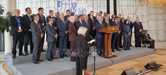 บรรดาเอกอัครราชทูตสหประชาชาติออกแถลงการณ์ร่วม (ภาพจาก TTXVN) |