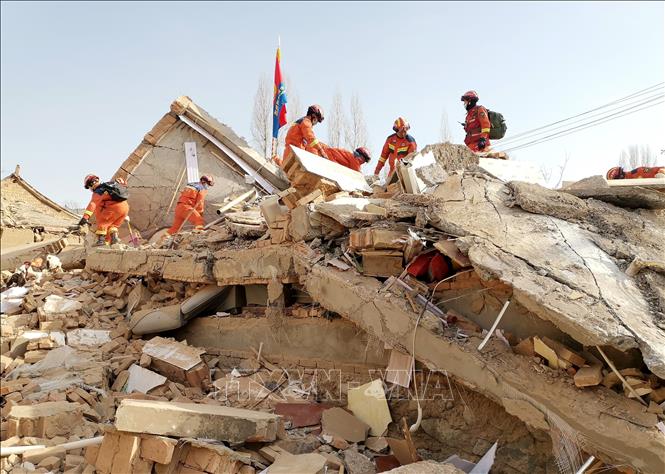 เจ้าหน้าที่หน่วยกู้ภัยกว่า 1 พัน 5 ร้อยคนกำลังเข้าร่วมกิจกรรมการกู้ภัยในสถานที่เกิดเหตุ (Photo: THX/TTXVN) |