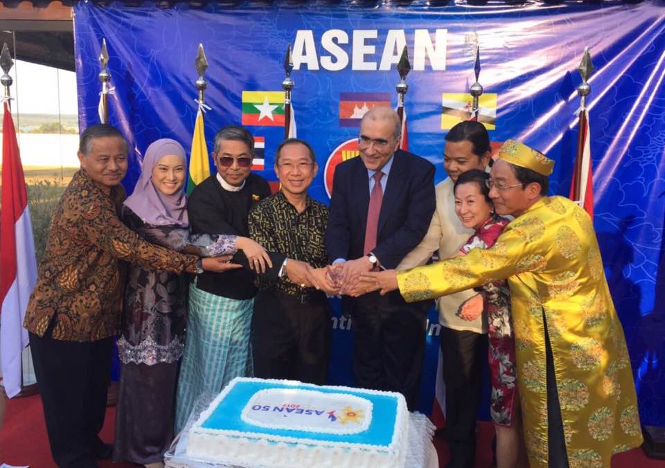 ในการกล่าวปราศรัยในพิธี เอกอัครราชทูตไทย สุรศักดิ์ สุภารัตน์ ประธานเอซีบีได้ย้ำถึงการพัฒนาของอาเซียนในตลอด 50 ปีที่ผ่านมาในด้านสันติภาพและความมั่นคง การพัฒนาและการผสมผสานเข้ากับเศรษฐกิจในภูมิภาคและโลก การพัฒนาวัฒนธรรมและสังคม ด้วยความพยายามผ่านการจัดตั้งประชาคมเศรษฐกิจอาเซียนและแนวทางที่มีความเห็นพ้องเป็นเอกฉันท์ในความหลากหลายและถือประชาชนเป็นศูนย์กลาง ความร่วมมือระหว่างประเทศสมาชิกอาเซียน ระหว่างอาเซียนกับหุ้นส่วนสนทนาและองค์การในภูมิภาคและประเทศต่างๆจะสร้างศักยภาพใหม่ให้แก่สันติภาพ ความมั่นคงและการพัฒนาที่เจริญรุ่งเรืองในปีหน้า ส่วนนาย Marcos Galvao รัฐมนตรีช่วยและรักษาการรัฐมนตรีต่างประเทศบราซิลได้แสดงความเชื่อมั่นว่า อาเซียนจะมีก้าวเดินพัฒนาใหม่และมีส่วนร่วมมากขึ้นต่อสันติภาพ ความมั่นคง การผสมผสานเข้ากับกระแสเศรษฐกิจและการค้าในโลก ผ่านการเยือนสิงคโปร์ มาเลเซียและเวียดนามของรัฐมนตรีต่างประเทศบราซิลในเร็วๆนี้ บราซิลมีความประสงค์ว่า จะร่วมกับประเทศสมาชิกอาเซียนและกลุ่มอาเซียนแสวงหามาตรการผลักดันความร่วมมือทวิภาคีในหลายด้าน.