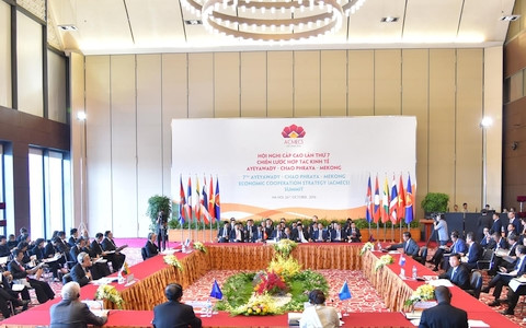 ในวันเดียวกัน การประชุมระดับสูงยุทธศาสตร์ความร่วมมือทางเศรษฐกิจ อิรวดี - เจ้าพระยา - แม่โขง ครั้งที่7 (ACMECS7) ก็ได้ออกปฏิญญากรุงฮานอย โดยยืนยันถึงผลสำเร็จที่ได้บรรลุของ ACMECS นับตั้งแต่ที่ได้รับการจัดตั้งและให้คำมั่นว่า จะปฏิบัติกิจกรรมความร่วมมือในระยะต่อไป โดยเน้นการขยายความเชื่อมโยงในภูมิภาคและผลักดันการพัฒนาอย่างยั่งยืน ผู้นำทุกท่านได้ให้คำมั่นอีกครั้งเกี่ยวกับความร่วมมือเพื่อการพัฒนาที่เป็นมิตรกับสิ่งแวดล้อมและยั่งยืนในภูมิภาค พร้อมทั้งย้ำถึงความสำคัญในการบรรลุเป้าหมายและมาตรฐานที่ได้ถูกระบุในระเบียบวาระการประชุมปี 2030 เกี่ยวกับการพัฒนาอย่างยั่งยืนของสหประชาชาติ ตลอดแสดงความตั้งใจขยายความร่วมมือในการพัฒนการเกษตรอัฉริยะ การอนุรักษ์สิ่งแวดล้อม การควบคุมแหล่งทรัพยากรธรรมชาติอย่างยั่งยืนและการใช้พลังงานอย่างมีประสิทธิภาพ ขยายความร่วมมือระหว่าง ACMECS กับคณะกรรมาธิการแม่น้ำโขงและกลไกระดับภูมิภาคอื่นๆเพื่อควบคุมและจัดการแหล่งน้ำอย่างมีประสิทธิภาพและยั่งยืน