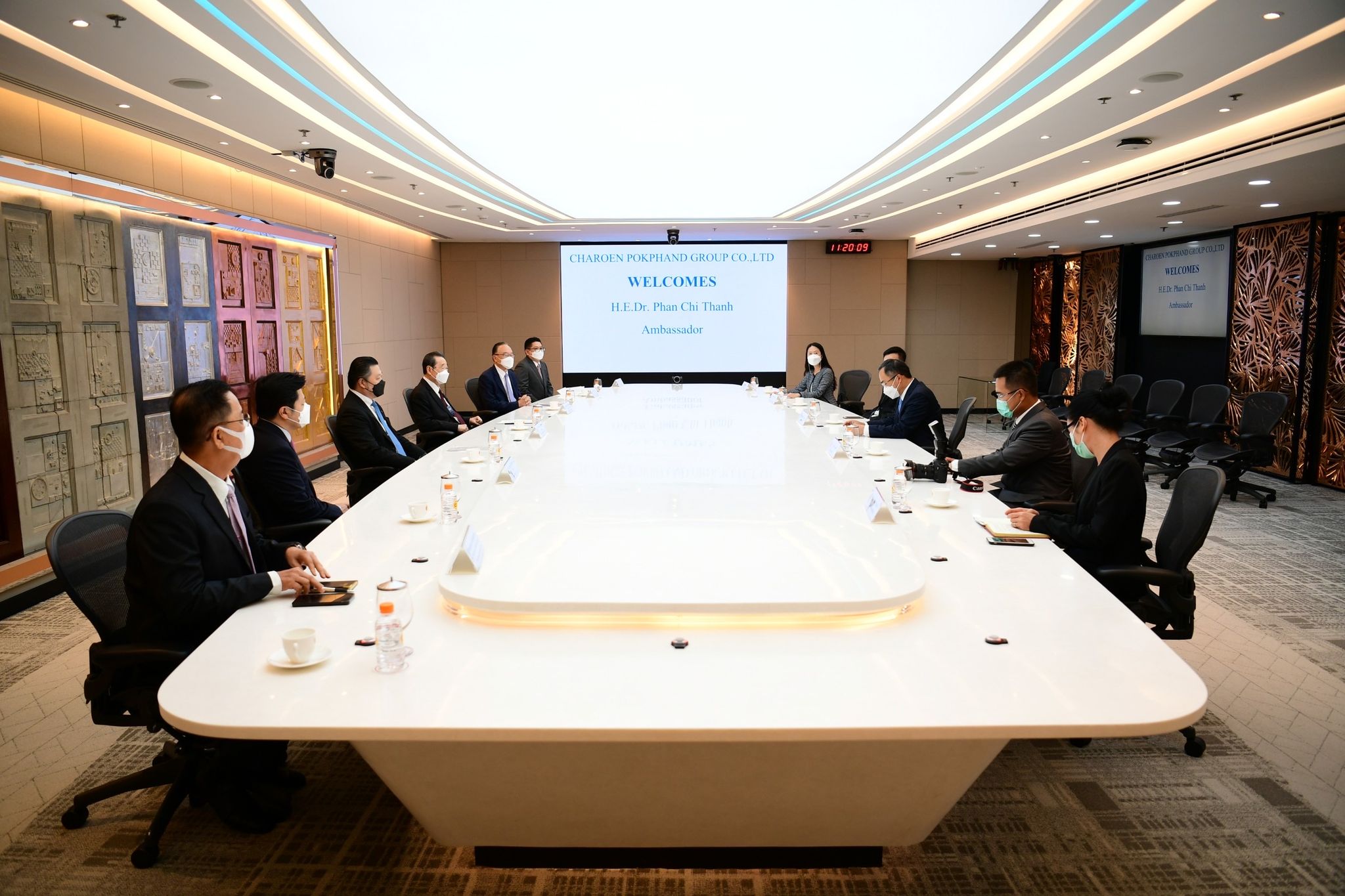 ส่วนเอกอัครราชทูต ฟานชี้แถ่ง ได้กล่าวแสดงความยินดีต่อผลการลงทุนและประกอบธุรกิจของทางบริษัทซีพี โดยเฉพาะบริษัทซีพีเวียดนาม พร้อมทั้งแนะนำนโยบายดึงดูดการลงทุนจากต่างประเทศและโอกาสการลงทุนในเวียดนาม โดยยืนยันว่า การลงทุนจากต่างประเทศ รวมทั้งการลงทุนของซีพีเวียดนามเป็นส่วนหนึ่งที่สำคัญต่อเศรษฐกิจเวียดนาม ตลอดจนเสนอให้ทางบริษัทซีพีและซีพีเวียดนามขยายการลงทุน การประกอบธุรกิจและการใช้เทคโนโลยีที่ทันสมัย ผลักดันการปรับเปลี่ยนสู่ยุคดิจิทัลเพื่อประโยชน์ของทั้งสองประเทศต่อไป