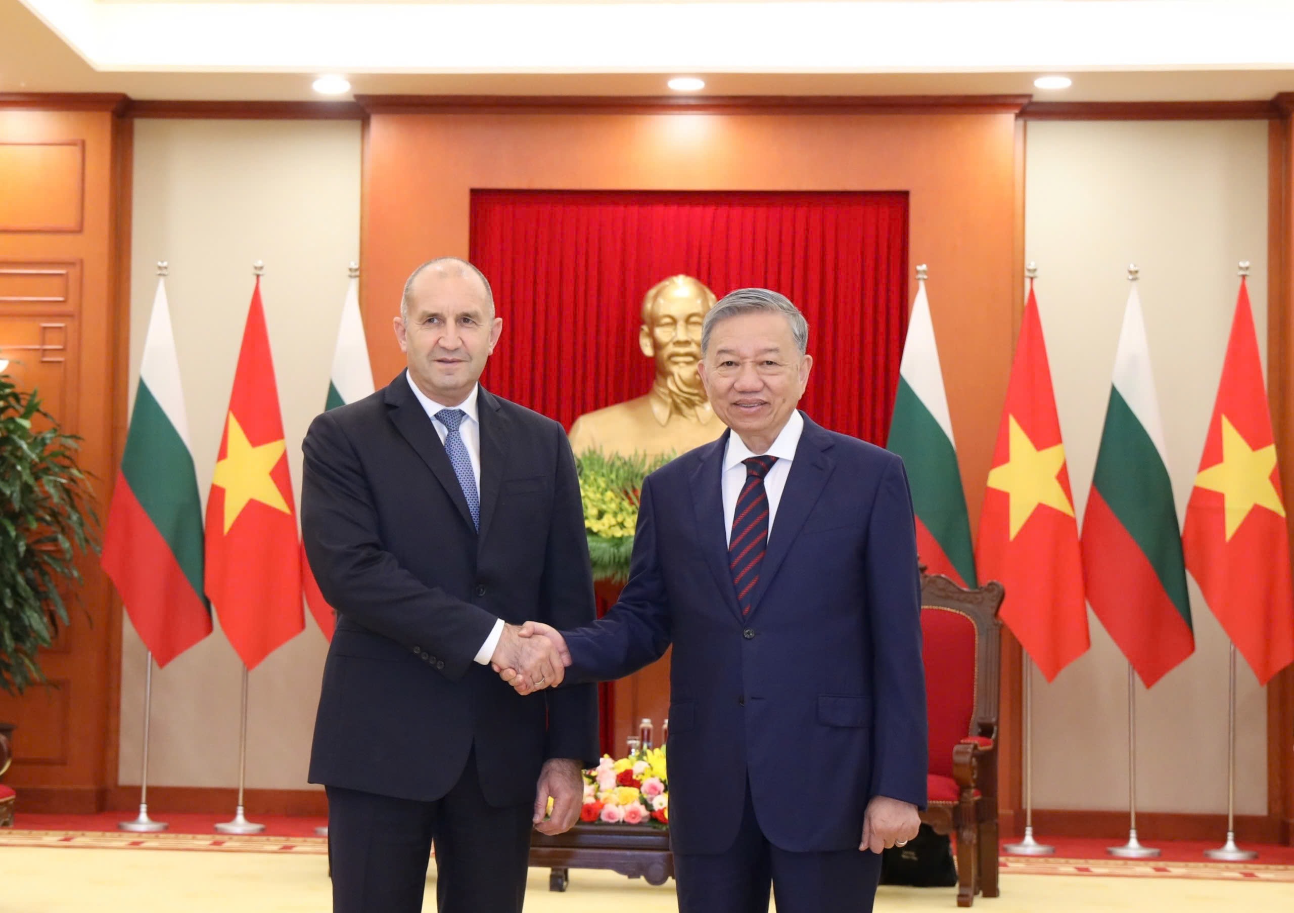 ส่วนประธานาธิบดีบัลแกเรียได้แจ้งให้เลขาธิการใหญ่พรรค โตเลิม รับทราบเกี่ยวกับผลการเจรจากับประธานประเทศ เลืองเกื่อง และยืนยันว่า บัลแกเรียให้ความสำคัญต่อความสัมพันธ์มิตรภาพที่ดีงามระหว่างสองประเทศ ถือเวียดนามเป็นหุ้นส่วนชั้นนำในเอเชียตะวันออก ถือความร่วมมือระหว่างพรรคการเมืองต่างๆ ของบัลแกเรียกับพรรคคอมมิวนิสต์เวียดนามเป็นช่องทางที่สำคัญเพื่อกระชับความสัมพันธ์ทวิภาคีและเห็นพ้องกับข้อเสนอต่างๆ ของเลขาธิการใหญ่พรรค โตเลิม เพื่อนำความสัมพันธ์ระหว่างสองประเทศเข้าสู่ส่วนลึกและมีประสิทธิภาพมากขึ้น.