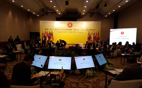 (VOVworld) – เมื่อเช้าวันที่ 3 มีนาคม ได้มีการจัดพิธีเปิดการประชุมรัฐมนตรีเศรษฐกิจอาเซียนอย่างไม่เป็นทางการครั้งที่ 22 หรือ ASEAN Retreat 22 ณ จังหวัดเชียงใหม่ ประเทศไทย โดยมีนาย เล เลือง มิง เลขาธิการอาเซียน พร้อมบรรดารัฐมนตรีและเจ้าหน้าที่ระดับสูงด้านเศรษฐกิจของประเทศสมาชิกอาเซียน รวมทั้งเวียดนาม ซึ่งนำโดยนาย เหงวียน เกิ่ม ตู๊ รัฐมนตรีช่วยว่าการกระทรวงอุตสาหกรรมและพาณิชย์ เข้าร่วม ซึ่งการประชุมดังกล่าวเป็นกิจกรรมที่สำคัญเพื่อให้รัฐมนตรีเศรษฐกิจของ 10 ประเทศสมาชิกอาเซียนได้แลกเปลี่ยนและหารือเกี่ยวกับแนวทางต่างๆ รวมทั้งความร่วมมือด้านเศรษฐกิจที่ทุกประเทศอาเซียนได้ให้ความสนใจ และการสร้างสรรค์ประชาคมเศรษฐกิจอาเซียนให้ประสบผลสำเร็จ เนื้อหาของการประชุมครั้งนี้ประกอบด้วย เป้าหมายหลักของประเทศลาวในวาระดำรงตำแหน่งประธานหมุนเวียนของอาเซียนประจำปี 2016 ข้อเสนอแนะของกลุ่มผู้ช่วยระดับสูงให้แก่บรรดารัฐมนตรีเศรษฐกิจอาเซียน AEM เพื่อผลักดันกระบวนการผสมผสานของภูมิภาค ความคืบหน้าในการเจรจาเกี่ยวกับข้อตกลงหุ้นส่วนทางเศรษฐกิจระดับภูมิภาค RCEP กับ 6 ประเทศ ได้แก่ จีน สาธารณรัฐเกาหลี ญี่ปุ่น อินเดีย ออสเตรเลีย และนิวซีแลนด์ อัปเดทข้อมูลเกี่ยวกับข้อตกลงการค้าระหว่างอาเซียนกับหุ้นส่วน ASEAN+1 FTA ความพร้อมในการเตรียมจัดการประชุมทาบทามความคิดเห็นระหว่างบรรดารัฐมนตรีเศรษฐกิจอาเซียนกับคณะกรรมาธิการการการค้าระหว่างประเทศของสหภาพยุโรป ในบ่ายวันเดียวกัน ได้มีการจัดการประชุมทาบทามความคิดเห็นระหว่างบรรดารัฐมนตรีเศรษฐกิจอาเซียนกับคณะกรรมาธิการการการค้าของสหภาพยุโรป ซึ่งเวีดยนามเป็นประธานการประชุม.