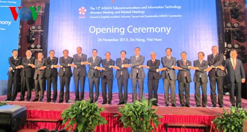 (VOVworld) – การประชุมรัฐมนตรีโทรคมนาคมและเทคโนโลยีสารสนเทศอาเซียนภายใต้หัวข้อ “มุ่งสู่ประชาคมอาเซียนที่พัฒนาในทุกด้าน ปลอดภัยและยั่งยืนบนพื้นฐานดิจิตอล” ได้เปิดขึ้นในเช้าวันที่ 26 พฤศจิกายน ณ นครดานังโดยมีรัฐมนตรีดูแลเกี่ยวกับโทรคมนาคมและเทคโนโลยีสารสนเทศจาก 10 ประเทศสมาชิกอาเซียนและประเทศคู่เจรจาคือญี่ปุ่น จีนและสาธารณรัฐเกาหลี พร้อมกับนาย เลเลืองมิงห์ เลขาธิการอาเซียนและนาย Malcolm Johnson รองเลขาธิการสหภาพโทรคมนาคมระหว่างประเทศหรือไอทียูเข้าร่วม ในการประชุม บรรดารัฐมนตรีจะออกแถลงการณ์เกี่ยวกับการเสร็จสิ้นการปฏิบัติแผนปฏิบัติการแบบบูรณาการเกี่ยวกับโทรคมนาคมและเทคโนโลยีสารสนเทศอาเซียนในช่วงปี 2010-2015 แผนแบบบูรณาการเกี่ยวกับโทรคมนาคมและเทคโนโลยีสารสนเทศอาเซียนหรือเอไอเอ็มปี 2020 ในการกล่าวปราศรัยเปิดการประชุม นาย เหงียนซวนฟุก รองนายกรัฐมนตรีได้ย้ำว่า ความร่วมมือด้านเทคโนโลยีสารสนเทศและการสื่อสารได้มีส่วนร่วมเป็นอย่างมากต่อการพัฒนาของภูมิภาค “ผมขอเสนอให้ที่ประชุมให้ความสนใจเป็นอันดับต้นๆต่อความร่วมมือในเวลาที่จะถึง 1คือให้ความสนใจเป็นอันดับต้นๆต่อข้อคิดริเริ่มเกี่ยวกับการลดช่องว่างระหว่างประเทศสมาชิก เขตตัวเมืองและชนบทเพื่อให้ประชาชนทุกคนมีโอกาสใช้บริการและเข้าถึงข้อมูลอย่างเสมอภาคเพื่อมุ่งสู่เป้าหมายพัฒนาอย่างเท่าเทียมกันในภูมิภาค 2คือการพัฒนาเทคโนโลยีสารสนเทศและการสื่อสารต้องผูกพันกับการพัฒนาอย่างยั่งยืน ค้ำประกันสิทธิผลประโยชน์ด้านเศรษฐกิจ ลดปัจจัยในทางลบที่ส่งผลกระทบต่อสังคม ส่งเสริมบทบาทพื้นฐานและพลังขับเคลื่อนการพัฒนาของหน่วยงานเศรษฐกิจอื่นๆ 3คือผลักดันการวิจัยพัฒนาผลิตภัณฑ์เทคโนโลยีขั้นสูงและการจัดทำนโยบายเกี่ยวกับการอนุรักษ์สิ่งแวดล้อม การประยุกต์ใช้เทคโนโลยีสารสนเทศเพื่อสนับสนุนการพัฒนาหน่วยงานด้านโครงสร้างพื้นฐานเศรษฐกิจและสังคม 4คือเทคโนโลยีสารสนเทศต้องทำให้กิจกรรมเข้าถึงและแลกเปลี่ยนข้อมูลระหว่างประชาชนและผู้ประกอบการของประเทศสมาชิกผ่านระบบอินเตอร์เน็ตมีความปลอดภัย”