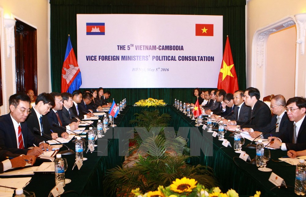 (VOVworld) – เนื่องในโอกาสเดินทางมาเยือนเวียดนามและเป็นประธานร่วมในการประชุมทาบทามทางการเมืองระดับรัฐมนตรีช่วยว่าการกระทรวงต่างประเทศเวียดนาม – กัมพูชาครั้งที่ 5 เมื่อบ่ายวันที่ 5 พฤษภาคม นาย อึง เซียน เลขานุการรัฐมนตรีว่าการกระทรวงต่างประเทศและวิเทศสัมพันธ์กัมพูชาพร้อมคณะผู้แทนได้เข้าเยี่ยมคารวะรองนายกรัฐมนตรีและรัฐมนตรีว่าการกระทรวงต่างประเทศเวียดนาม ฝ่ามบิ่งมิง โดยนาย ฝ่ามบิ่งมิง ได้ชื่นชมผลสำเร็จของการประชุมทาบทามทางการเมืองครั้งที่ 5 ซึ่งถือเป็นกลไกที่ช่วยส่งเสริมความเข้าใจระหว่างกัน และแลกเปลี่ยนประสบการณ์ รวมทั้งความร่วมมือทวิภาคีและพหุภาคี ทั้งนี้ รองนายกรัฐมนตรีเวียดนามได้เรียกร้องให้กระทรวงการต่างประเทศของทั้งสองฝ่ายจัดการประชุมทาบทามทางการเมืองเป็นประจำทุกปี พร้อมทั้งมีการปรับปรุงระเบียบวาระการประชุมครั้งต่อไปให้มีประสิทธิภาพมากขึ้นและเอื้อประโยชน์ต่อทั้งสองฝ่าย.