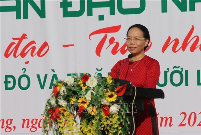 นาง หวิ่งถิเหยียมหงอก รองประธานคณะกรรมการประชาชนจังหวัดซอกจังกล่าวปราศรัยในงาน (VNA) |