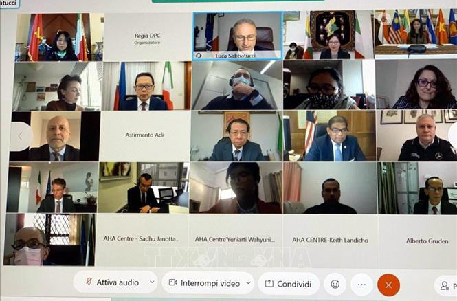 ส่วนนาง เหงียนถิบิ๊กเหวะ เอกอัครราชทูตเวียดนามประจำอิตาลีได้กล่าวย้ำถึงประสบการณ์และการให้ความสนใจเป็นอันดับต้นๆของเวียดนามในการป้องกัน รับมือและควบคุมภัยธรรมชาติและโรคโควิด 19 พร้อมทั้งแสดงความเชื่อมั่นว่า ในฐานะประธานกลุ่มจี 20 อิตาลีจะผลักดันความร่วมมือกับอาเซียนมากขึ้นเพื่อมีส่วนร่วมผลักดันเป้าหมาย “มนุษย์” ในระเบียบวาระการประชุมของจี 20 ในปี 2021 ให้มีประสิทธิภาพ.