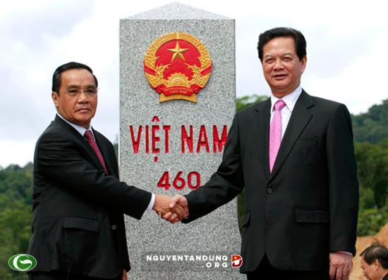 ![]() นายกรัฐมนตรีเวียดนามและลาวในการปักหลักพรมแดนหมายเลข 460 เมื่อปี 2013 (Photo: VGP)