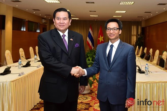 ![]() พลเอก ธนะศักดิ์ ปฏิมาประกร รองนายกรัฐมนตรีไทยและนายหวูดึ๊กดาม รองนายกรัฐมนตรีเวียดนาม (Photo: infonet)