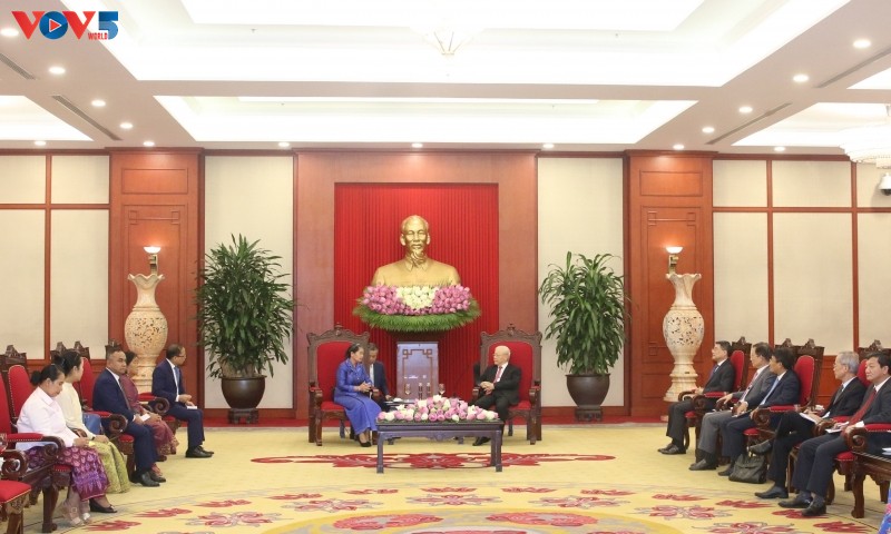 ท่าน เหงียนฟู้จ่อง เลขาธิการใหญ่พรรคฯ ได้ให้การต้อนรับนาง Men Sam An |