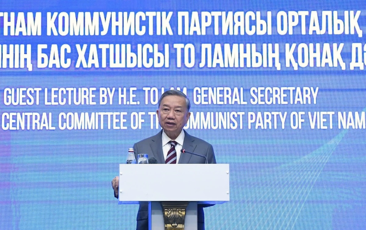 โอกาสนี้ เลขาธิการใหญ่พรรค โตเลิม ได้กล่าวปราศรัยเกี่ยวกับนโยบายของเวียดนาม ณ สถาบันราชการ โดยย้ำว่า ความสัมพันธ์หุ้นส่วนยุทธศาสตร์เวียดนาม – คาซัคสถาน ควรได้รับการปฏิบัติผ่านกิจกรรมร่วมมือที่เป็นรูปธรรมและมีประสิทธิภาพเพื่อกลายเป็นตัวอย่างแห่งความร่วมมือใต้ - ใต้ระหว่างเอเชียตะวันออกเฉียงใต้กับเอเชียกลาง ต้องผลักดันการเชื่อมโยง 5 ด้าน ประกอบด้วย มนุษย์ เศรษฐกิจ โครงสร้างพื้นฐาน คมนาคม- การขนส่ง นโยบายและการเชื่อมโยงระหว่างภูมิภาค