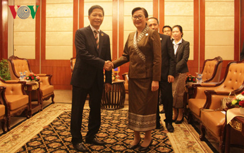 ![]() นาย เจิ่นต๊วนแอง รัฐมนตรีว่าการกระทรวงพาณิชย์และอุตสาหกรรมเวียดนามพบปะกับนาง เข็มมะนี พนเสนารัฐมนตรีว่าการกระทรวงพาณิชย์และอุตสาหกรรมลาว