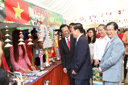 นาย แถก ยือ เอกอัครราชทูตเวียดนามและนาย Youk Ngoy ชมบูทของเวียดนาม