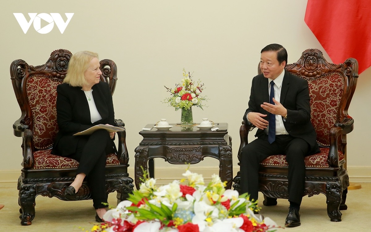 นาย เจิ่นห่งห่า เผยว่า เวียดนามได้มีโครงการปรับเปลี่ยนด้านพลังงาน เช่น การเพิ่มปริมาณการผลิตไฟฟ้าของโรงไฟฟ้าพลังน้ำผสานกับไฟฟ้าพลังงานแสงอาทิตย์และไฟฟ้าพลังงานลม การปรับเปลี่ยนไปสู่การใช้ยานพาหนะที่เป็นมิตรกับสิ่งแวดล้อม เป็นต้น ดังนั้น เวียดนามมีความประสงค์ที่จะได้รับความช่วยเหลือด้านการเงินและเทคโนโลยีเพื่อปฏิบัติโดยเร็ว พร้อมทั้งเสนอให้ GFANZ จัดทำกลไกการเงินที่ชัดเจนเกี่ยวกับความรับผิดชอบของฝ่ายต่างๆ แหล่งเงินทุนในด้านพลังงานหมุนเวียนและมีคำมั่นเกี่ยวกับการเงิน การถ่ายทอดเทคโนโลยีจากกลุ่มประเทศที่พัฒนาหรือจี 7 และหุ้นส่วนระหว่างประเทศในข้อตกลงการเป็นพันธมิตรด้านการเปลี่ยนผ่านพลังงานที่เป็นธรรม หรือ JETP ส่วนนาง Mary L.Schapiro ได้ยืนยันว่า GFANZ จะสงวนเงินให้แก่กิจกรรมการวิจัย การเปลี่ยนแปลงใหม่ การถ่ายทอดเทคโนโลยีด้านพลังงานหมุนเวียนและมีความประสงค์ที่จะได้รับข้อเสนอจากกระทรวงและหน่วยงานต่างๆของเวียดนามเกี่ยวกับกลไกการระดมเงินลงทุนในตลาดระหว่างประเทศจากสถานประกอบการที่เกี่ยวข้องถึงการพัฒนาเครือข่ายไฟฟ้าอัจฉริยะ พลังงานหมุนเวียน การผลิตไฟฟ้าจากแสงอาทิตย์และพลังงานลมนอกชายฝั่ง.