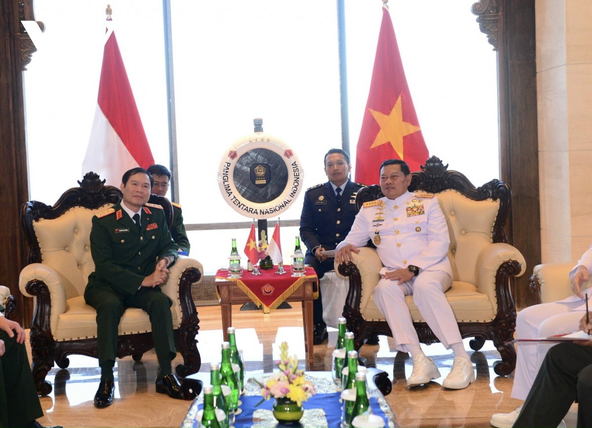พลโทอาวุโส เหงวียนเตินเกืองพบปะกับพลเรือเอก Yudo Margono ผู้บัญชาการกองทัพแห่งชาติอินโดนีเซีย |