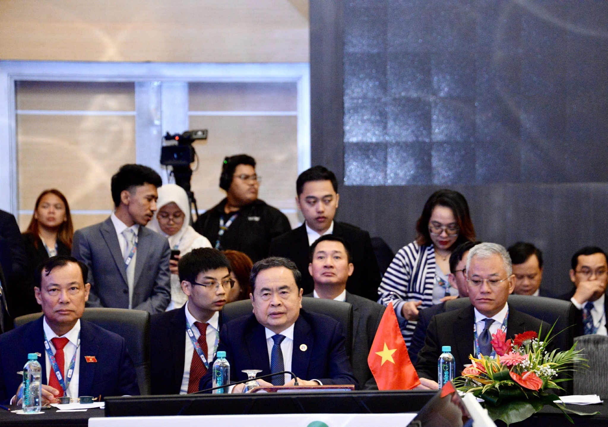 ในการกล่าวปราศรัยในการประชุม ประธานสภาแห่งชาติ เจิ่นแทงเหมิน ได้ชื่นชมการเตรียมความพร้อมของมาเลเซียในการจัดการประชุมครั้งนี้และยืนยันว่า เวียดนามสนับสนุนและร่วมมือกับรัฐสภามาเลเซียและรัฐสภาสมาชิกอาเซียน มีส่วนร่วมอย่างเข้มแข็งต่อความสำเร็จของ AIPA-46 และผลักดันการพัฒนาอย่างครอบคลุมและยั่งยืนในภูมิภาค พร้อมทั้งชื่นชมการสนับสนุนของรัฐสภาประเทศสมาชิกต่อร่างมติต่างๆ ที่เวียดนามและยื่นให้ AIPA-46 อนุมัติเพื่อขยายความร่วมมือในด้านที่ได้รับความสนใจเป็นอันดับต้นๆ เช่น เศรษฐกิจดิจิทัล การปรับเปลี่ยนสู่ยุคดิจิทัล ความมั่นคงทางไซเบอร์ ผลักดันการค้าภายในกลุ่ม เป็นต้น