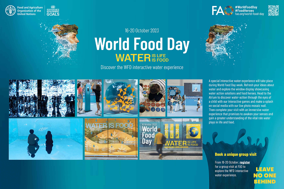 วันอาหารโลกปีนี้มีหัวข้อ “น้ำคือชีวิต น้ำคืออาหาร ไม่ปล่อยให้ใครถูกทิ้งไว้ข้างหลัง" (FAO) |