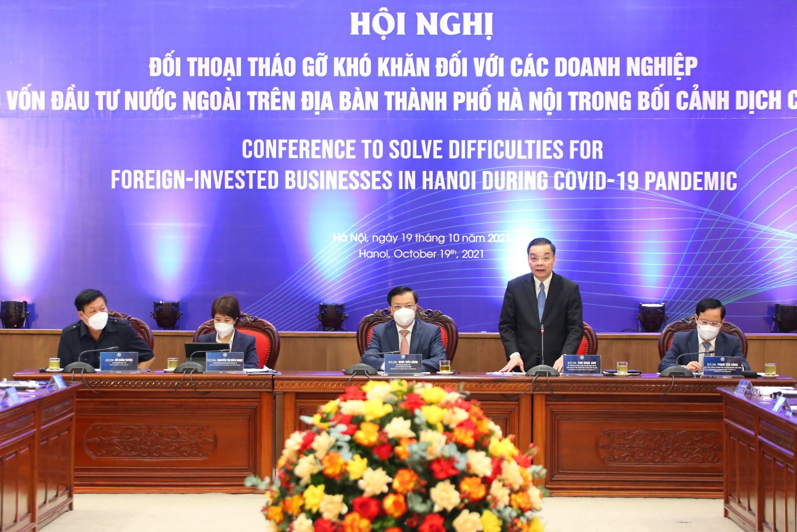 ในการกล่าวปราศรัยต่อการประชุม นาย ดิงเตี๊ยนหยุง เลขาธิการพรรคสาขากรุงฮานอยได้เผยว่า ปัจจุบันนี้ ในกรุงฮานอย มีโครงการลงทุนโดยตรงจากต่างประเทศ 6,625 โครงการ รวมยอดเงินทุนจดทะเบียนเกือบ 4 หมื่น 9 พันล้านดอลลาร์สหรัฐ โดยเฉพาะถึงเดือนกันยายนปี 2021 ถึงแม้ได้รับผลกระทบจากการแพร่ระบาดของโรคโควิด -19 แต่ฮานอยยังคงดึงดูเงินลงทุนจดทะเบียนใหม่ 1.28 พันล้านดอลลาร์สหรัฐ นาย ดิงเตี๊ยนหยุง ย้ำว่า “เราตระหนักได้ดีว่า การผลิตของสถานประกอบการกำลังถูกชะงักงันและการเดินผ่านของนักลงทุนต่างชาติก็ประสบอุปสรรคมากจากการแพร่ระบาดของโรคโควิด -19 จึงพยายามอย่างสุดความสามารถเพื่อควบคุมการแพร่ระบาดให้เร็วที่สุด เน้นแก้ไขอุปสรรคและสนับสนุนนักลงทุนต่างชาติเพื่อฟันฝ่าอุปสรรค ธำรงและฟื้นฟู.