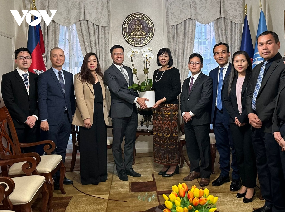 ส่วนในการอวยพรคณะผู้แทนกัมพูชา เอกอัครราชทูต ดั๋งหว่างยาง ได้ชื่นชมผลสำเร็จในทุกด้านของกัมพูชาในเวลาที่ผ่านมา โดยอวยพรให้กัมพูชาประสบความสำเร็จในการจัดการเลือกตั้งรัฐสภาสมัยที่ 7 ในเดือนกรกฎาคมนี้และพัฒนาประเทศให้เจริญรุ่งเรืองต่อไป ส่วนเอกอัครราชทูต Sophea Eat หัวหน้าคณะผู้แทนกัมพูชาประจำสหประชาชาติได้กล่าวขอบคุณการช่วยเหลือของเวียดนามในอดีตและแสดงความยินดีเกี่ยวกับความสัมพันธ์ฉันท์เพื่อนบ้านที่กำลังพัฒนาอย่างดีงาม ความสัมพันธ์มิตรภาพที่มีมาช้านานและความร่วมมือในทุกด้านระหว่างสองประเทศในเวลาที่ผ่านมา โดยเฉพาะในด้านการค้าและความร่วมมือในฟอรั่มพหุภาคีต่างๆ.