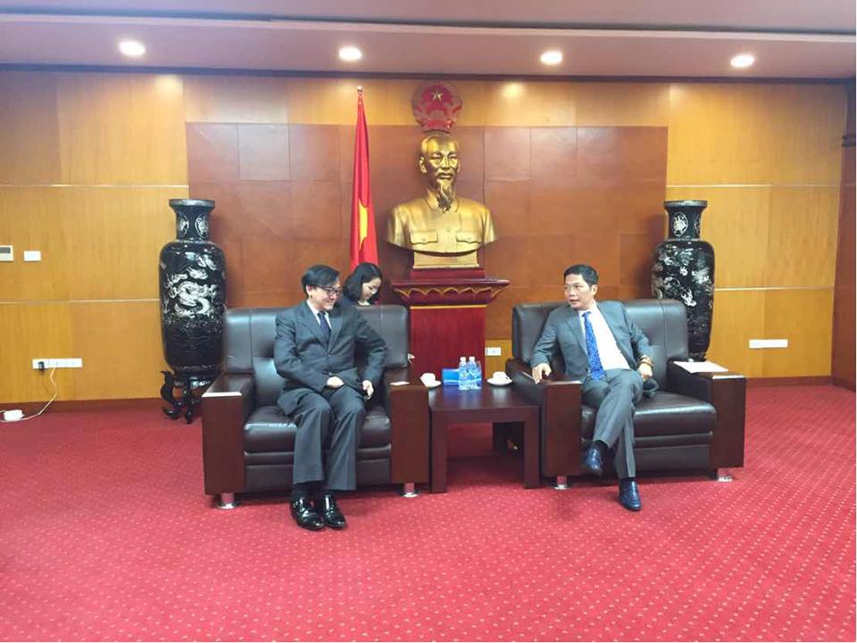 เมื่อวันที่ 13 ธ.ค. 2559 นายมานพชัย วงศ์ภักดี เอกอัครราชทูต ณ กรุงฮานอย พร้อมด้วย นางพรพิมล เพชรกูล อัครราชทูตที่ปรึกษาฝ่ายการพาณิชย์ ได้เข้าเยี่ยมคารวะนาย Tran Tuan Anh รัฐมนตรีว่าการกระทรวงอุตสาหกรรมและการค้าเวียดนาม