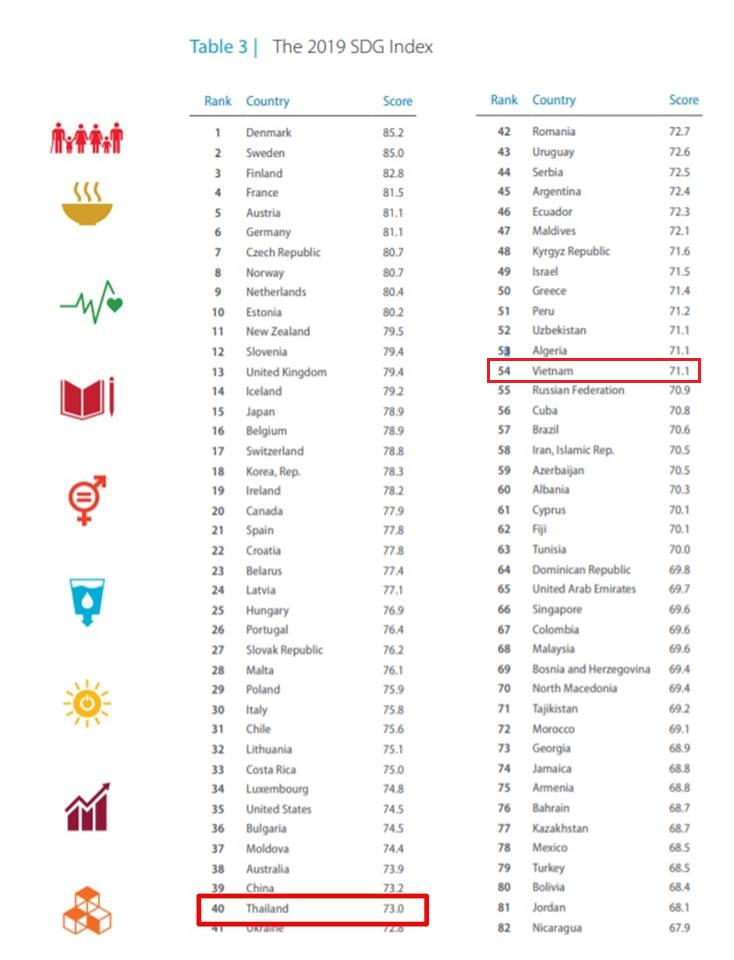 ด้วยอันดับใหม่นี้ไทยได้เพิ่มขึ้น 19 อันดับจากปีที่แล้ว ส่วนในกลุ่มอาเซียน ไทยอยู่อันดับต้นๆ ส่วนเวียดนามก็ไม่เเพ้กันที่อยู่อันดับที่54 เพิ่มขึ้น 3 อันดับจากปีที่แล้ว