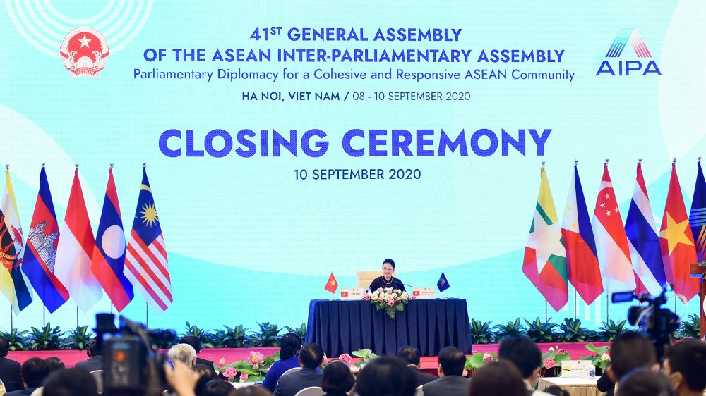 ในการกล่าวปราศรัยในพิธีปิด นาง เหงวียนถิกิมเงิน ประธานสภาแห่งชาติเวียดนามและประธานไอป้า 41ได้เผยว่า ผ่านการประชุม 6 ครั้ง ไอป้า 41ได้หารืออย่างตรงไปตรงมาเกี่ยวกับปัญหาร่วมของไอป้า พร้อมทั้ง ย้ำว่า สมัชชาใหญ่ไอป้าตระหนักได้ดีต่อความท้าทายด้านความมั่นคงทั้งรูปแบบเก่าและรูปแบบใหม่ การแพร่ระบาดของโรคโควิด –19ต่อภูมิภาคและแต่ละประเทศสมาชิก ซึ่งไอป้าต้องส่งเสริมความสามัคคี การทูตรัฐสภาเพื่อร่วมมือกันสร้างสรรค์ประชาคมอาเซียนที่เป็นหนึ่งเดียวและพร้อมปรับตัว และเดินพร้อมกับรัฐบาลประเทศอาเซียนในการสร้างสรรค์ประชาคมที่สันติภาพ เสถียรภาพและเพื่อผลประโยชน์ของประชาชน