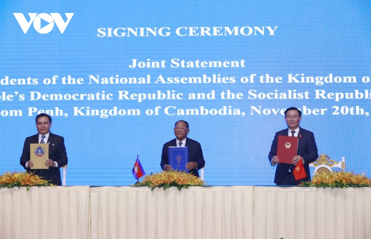 โดยประธานรัฐสภาทั้ง 3 ท่านตกลงที่จะยกระดับกลไกการประชุมระหว่างคณะกรรมาธิการของรัฐสภาของทั้งสามประเทศให้เป็น "การประชุมสุดยอดรัฐสภากัมพูชา - ลาว - เวียดนาม" ซึ่งจัดขึ้นทุกๆ 2 ปี โดยประธานรัฐสภาของทั้ง 3 ประเทศหมุนเวียนกันเป็นประธาน แถลงการณ์ร่วมยืนยันว่า การจัดตั้งกลไกการประชุมสุดยอดรัฐสภาของทั้งสามประเทศเพื่อส่งเสริมและเสริมสร้างสัมพันธไมตรี ความสามัคคีและความร่วมมือในทุกด้านโดยเน้นพัฒนาเศรษฐกิจและสังคม ความร่วมมือด้านกลาโหมและความมั่นคง การแลกเปลี่ยนระดับประชาชนเพื่อการพัฒนาที่ยั่งยืนของทั้งสามประเทศและภูมิภาค.