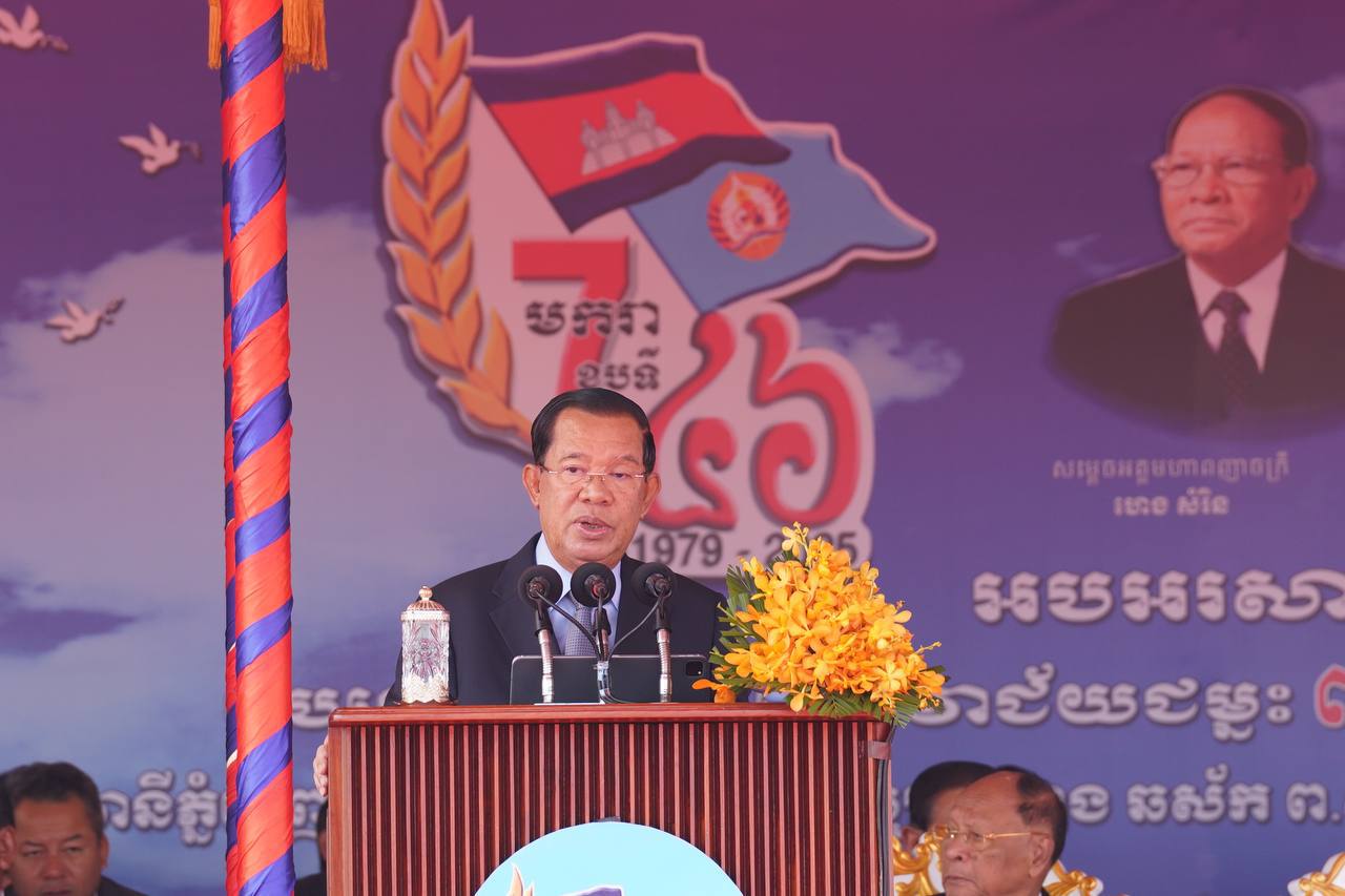 ในการกล่าวปราศรัยต่อหน้าประชาชนหลายหมื่นคนและแขกทั้งภายในและต่างประเทศที่เข้าร่วมการชุมนุมในกรุงพนมเปญ ประธานวุฒิสภาและหัวหน้าพรรคประชาชนกัมพูชาหรือ CPP สมเด็จ ฮุน เซน ได้ย้ำว่า การจัดงานมีวัตถุประสงค์เพื่อทบทวนอาชญากรรมร้ายแรงของระบอบฆ่าล้างเผ่าพันธุ์พลพตต่อประชาชนกัมพูชา อีกทั้ง เป็นโอกาสเพื่อเชิดชูส่วนร่วมที่ยิ่งใหญ่และการเสียสละอย่างกล้าหาญของเจ้าหน้าที่กองกำลังติดอาวุธการปฏิวัติกัมพูชาและทหารอาสาเวียดนามในการต่อสู้เพื่อโค่นล้มระบอบฆ่าล้างเผ่าพันธุ์เขมรแดง