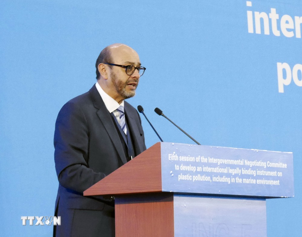 นาย Luis Vayas Valdivieso ประธานคณะกรรมการเจรจาระหว่างรัฐบาลว่าด้วยมลพิษจากพลาสติก (Yonhap) |