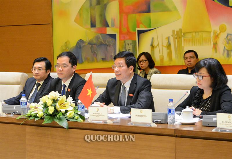 ในการนี้ นาย ฝ่ามดิ่งตว๋าน ประธานกลุ่มมิตรภาพสมาชิกรัฐสภาเวียดนาม-ไทยและรองหัวหน้าสำนักสภาแห่งชาติเวียดนามได้เผยว่า ความสัมพันธ์ร่วมมือเวียดนาม-ไทยในปัจจุบันกำลังพัฒนาอย่างดีงามบนพื้นฐานของข้อตกลงร่วมมือที่สำคัญๆระหว่าง 2 ประเทศ เช่น ความสัมพันธ์หุ้นส่วนยุทธศาสตร์ที่ลงนามกันในโอกาสการเยือนประเทศไทยของเลขาธิการใหญ่พรรค เหงวียนฟู้จ่อง เมื่อเดือนมิถุนายนปี 2013 และแผนปฏิบัติความสัมพันธ์หุ้นส่วนยุทธศาสตร์ระหว่างเวียดนามกับไทยที่ลงนามกันในโอกาสการเยือนเวียดนามของพลเอก ประยุทธ์ จันทร์โอชา นายกรัฐมนตรีไทย พร้อมทั้งประเมินว่า กลุ่มมิตรภาพสมาชิกรัฐสภาไทย-เวียดนามและกลุ่มมิตรภาพสมาชิกรัฐสภาเวียดนาม-ไทยมีการแลกเปลี่ยนคณะผู้แทนเป็นประจำและมีประสิทธิภาพ ซึ่งมีส่วนร่วมที่เข้มแข็งต่อการพัฒนาความสัมพันธ์ร่วมมือระหว่างรัฐสภาทั้ง 2 ประเทศและเชื่อมั่นว่า การเยือนเวียดนามครั้งนี้ของคณะฯจะช่วยส่งเสริมการพบปะสังสรรค์ระหว่างบรรดาส.ส. ขยายการแลกเปลี่ยนคณะผู้แทนระดับสูงและกระชับความสัมพันธ์หุ้นส่วนยุทธศาสตร์
