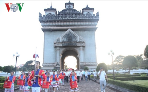 เช้าวันที่ 12 สิงหาคม ณ สวนสาธารณะ ประตูซัย กรุงเวียงจันทน์ ประเทศลาว ได้มีการ “เดินเท้าเพื่อสุขภาพ” เพื่อฉลองครบรอบ 50 ปีการก่อตั้งกลุ่มอาเซียน 8 สิงหาคมและ 20 ปีการที่ลาวเข้าเป็นสมาชิกของอาเซียน 23 กรกฎาคม โดยมีนายกรัฐมนตรีลาว อดีตผู้นำประเทศลาว เอกอัครราชทูตบรรดาประเทศอาเซียนประจำประเทศลาวและตัวแทนองค์การระหว่างประเทศประจำประเทศลาวเข้าร่วม ในการกล่าวปราศรัยในงาน รัฐมนตรีว่าการกระทรวงการต่างประเทศลาว เฉลิมชัย คมมาสิทธิ์ได้เผยว่า ในอีก 50 ปีที่จะถึงและปีต่อๆไป บรรดาประเทศอาเซียนต้องประสานงานอย่างใกล้ชิดมากขึ้นเพื่อร่วมมือกับบรรดาประเทศหุ้นส่วนและคู่สนทนาสร้างสรรค์สันติภาพ เสถียรภาพและความเจริญรุ่งเรื่องของภูมิภาคและโลก.